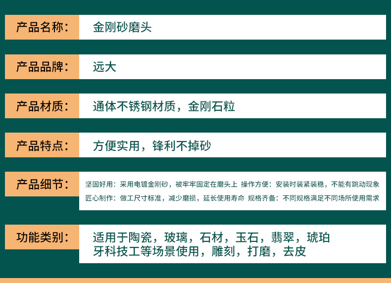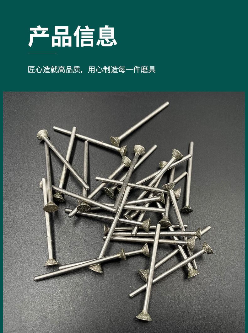 金剛石磨針金剛砂磨頭玻璃石頭刻字玉石開窗去皮雕刻2.35mm柄徑